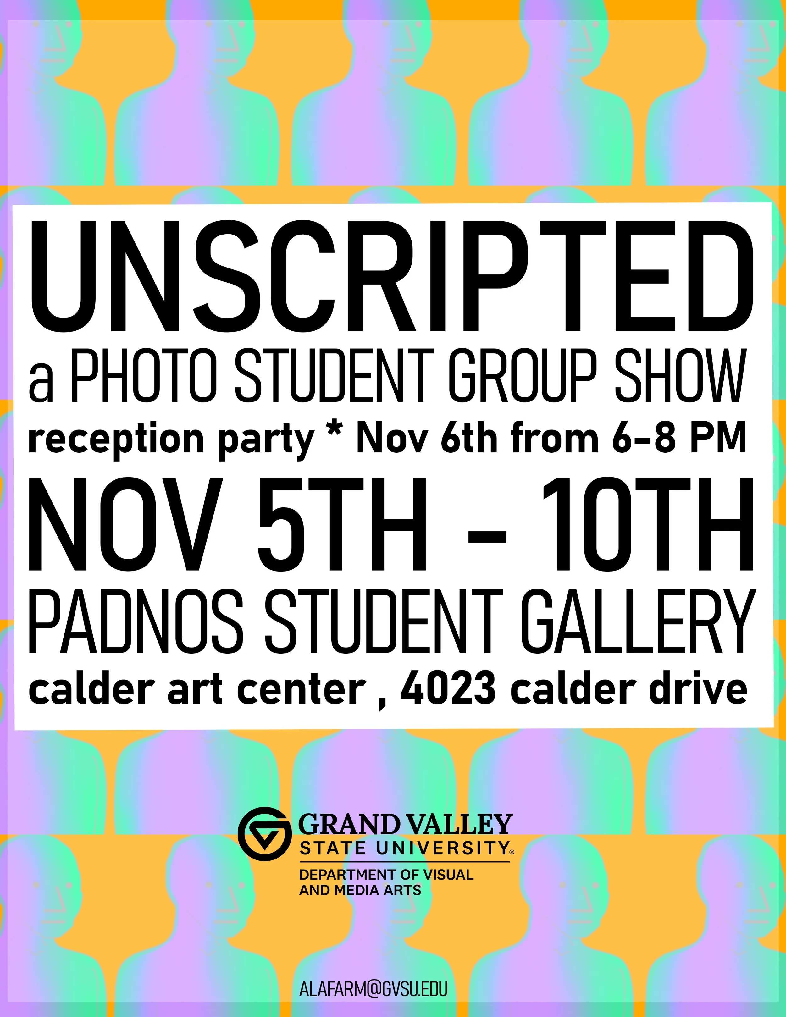 Photography My work explores composition, color, and narrative through still imagery. Exhibition Unscripted: a photo student group show